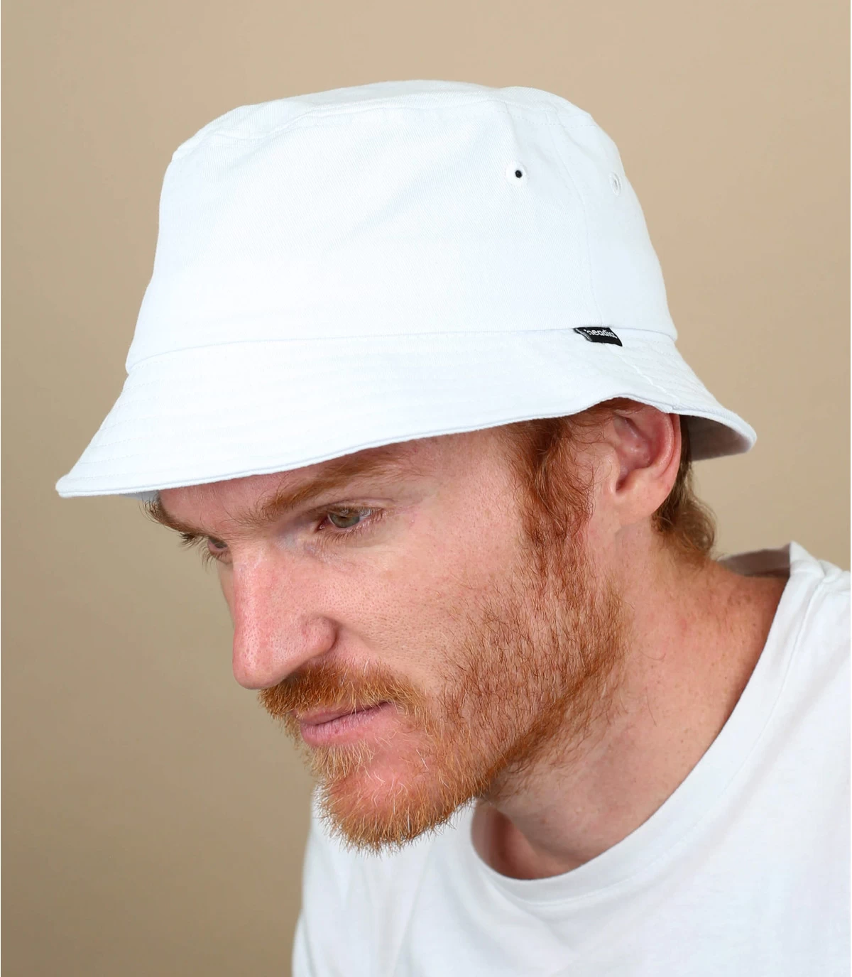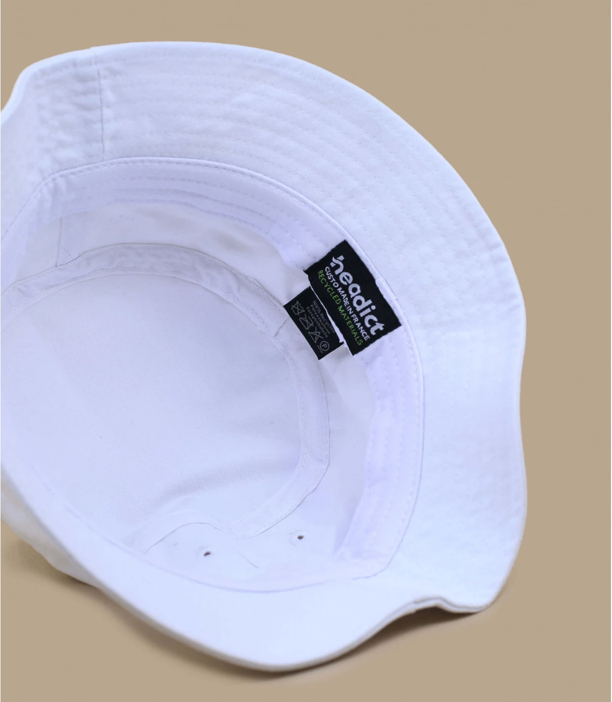 Weißer Fischerhut aus 100% recyceltem Material. Einheitsgröße, Kopfumfang 55-59 cm.