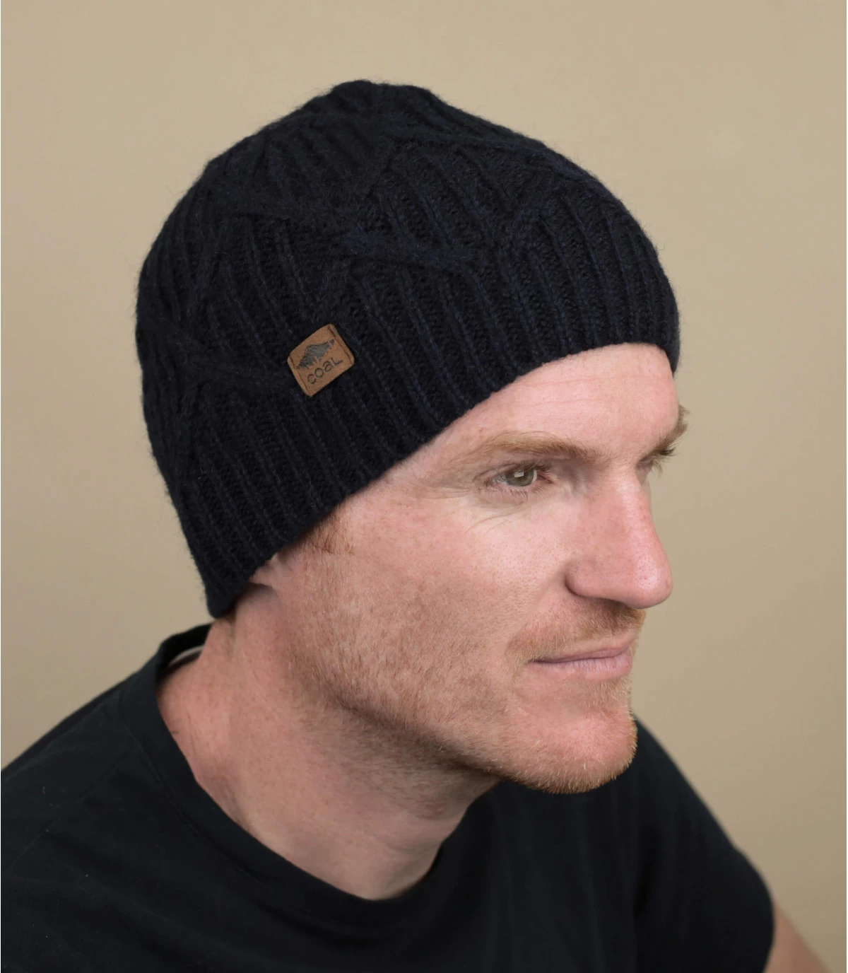 Marineblaue Herren Mütze mit Flechtmuster und Fleece-Futter.