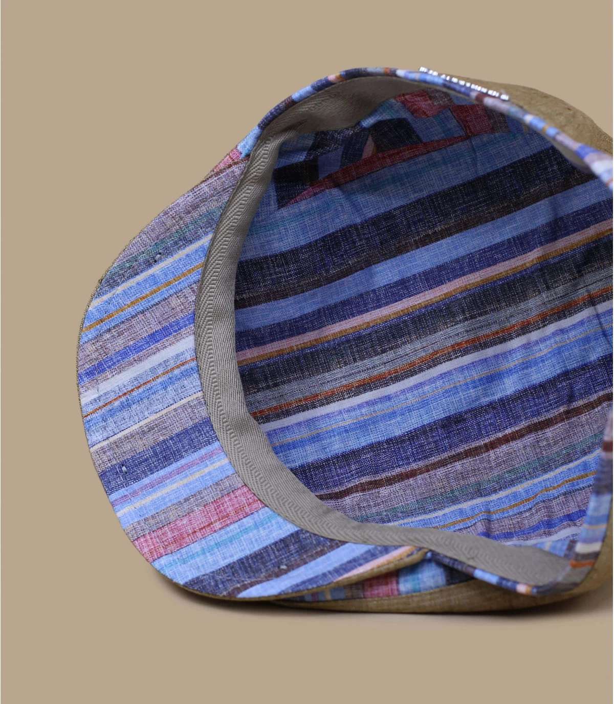 Mit einer beigefarbenen Schiebermütze aus 100 % Leinen strahlen Sie Eleganz aus. Sie ist aus einem hochwertigen organischen Stoff gefertigt. Am Rand ist ein pastellfarbener Streifen aufgenäht, auf dem der Markenname erscheint.