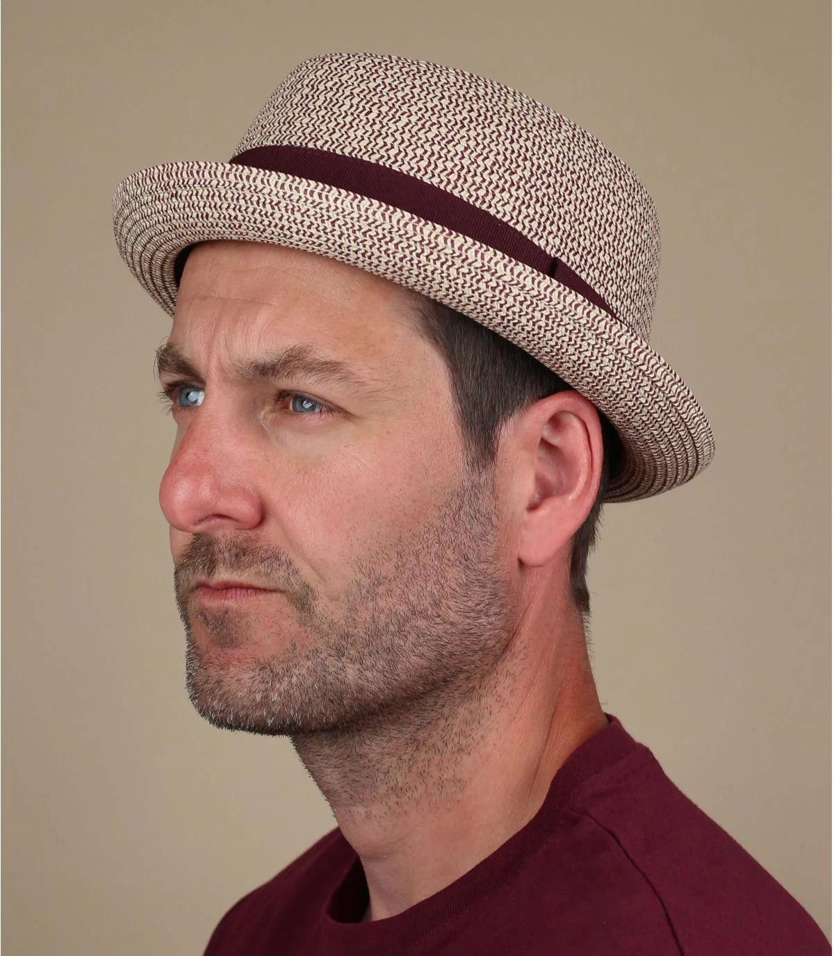 Dieser charmante Strohhut mit breitem bordeauxrotem Hutband verleiht Ihren Sommertagen eine dezente farbenfrohe Note. Schützen Sie sich vor der Sonne mit diesem schönen Trilby aus widerstandsfähigem Stroh und genießen Sie die Kühle seines Schattens