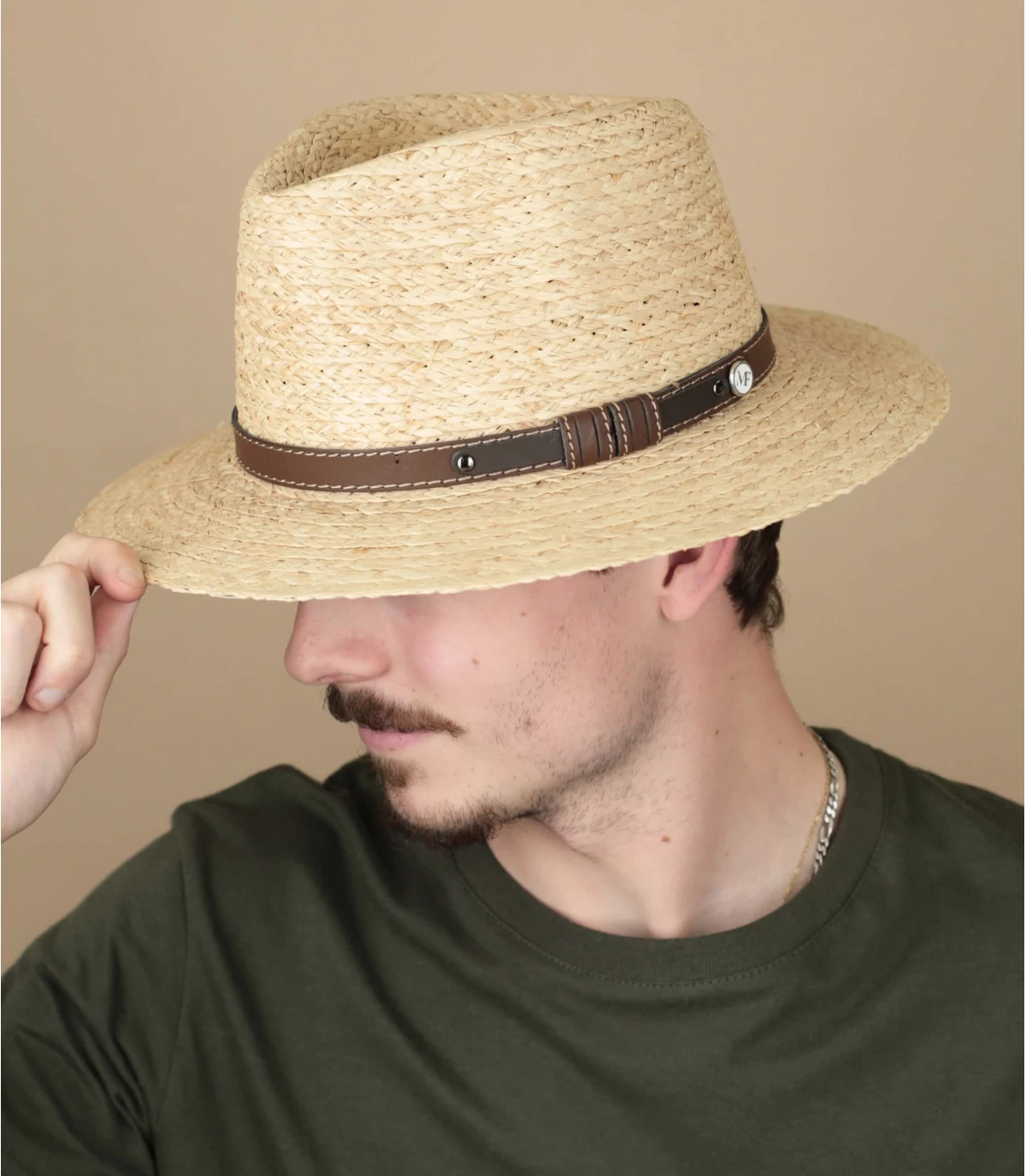 Mit diesem Fedora Hut aus Raffia Stroh, der in Italien hergestellt wurde, können Sie diesen Sommer am Strand elegant aussehen. Er ist mit einem Lederriemen verziert, der ihm eine raffinierte Note verleiht. Die breite Krempe und das dichte Gewebe bieten einen natürlichen Schutz vor der Sonne.