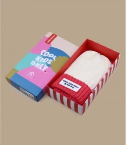 Angenehm hochwertiger Tragekomfort! Diese weiche Kindermütze aus Bio-Baumwolle ist aus einem ecrufarbenen Rippenstrick gefertigt und hat ein rosa Umschlag. Mit einem gewebten Cool Kids Only-Etikett versehen, wird er jedem gefallen.