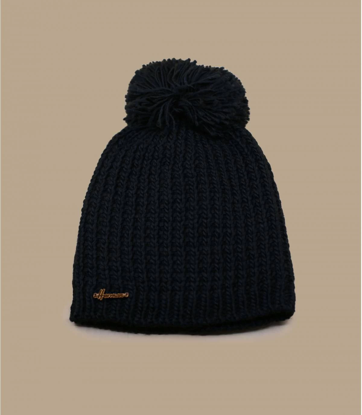 Schützen Sie sich vor der Kälte mit einer umweltschonenden Mütze. Wählen Sie diese bequeme schwarze Hermann Bommelmütze aus recyceltem Polyester und Wolle.