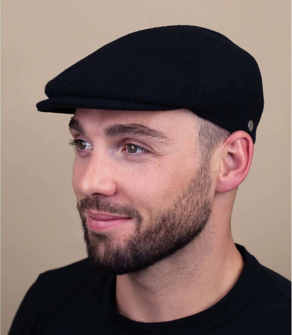 Diese in Italien hergestellte schwarze Flatcap aus Wolle ist angenehm zu tragen. Die Schiebermütze ist der letzte Feinschliff, um Ihren Look zu vervollständigen, der Ihnen bei jeder Gelegenheit Selbstvertrauen und Eleganz verleiht.