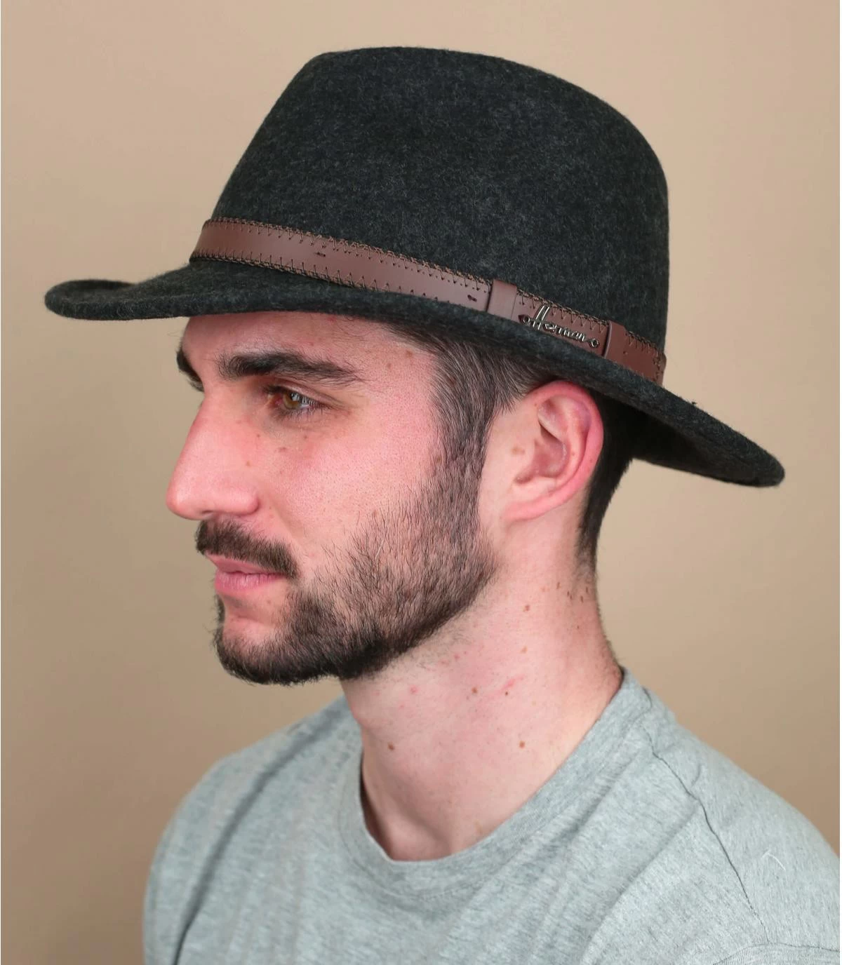 Dieser prächtige Filzhut aus reinem, dunkelgrauem Wollfilz der renommierten Fachmarke Herman sorgt für einen schlichten Stil und sanften Farbton in Ihren Winteroutfits und schützt Sie gleichzeitig vor Kälte und schlechtem Wetter. Der Fedora wird durch ein dezentes Lederband mit einem Metalllogo betont.