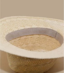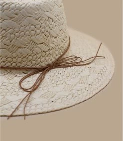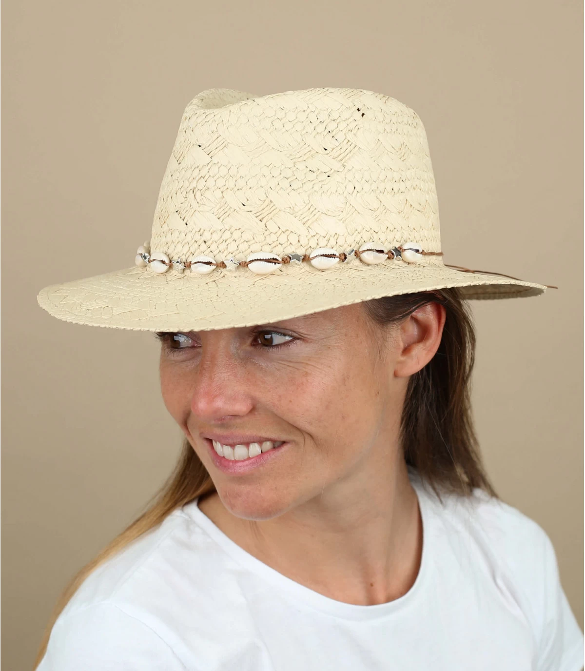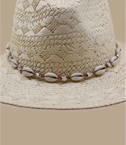 Ob am Strand, auf einer Party oder bei einem Drink zu zweit, dieser Fedora Hut aus Stroh wird seine Wirkung nicht verfehlen. Er wurde in Italien hergestellt und ist aus groben Maschen geflochten. Der Hut ist mit einem Riemen und Perlen verziert.