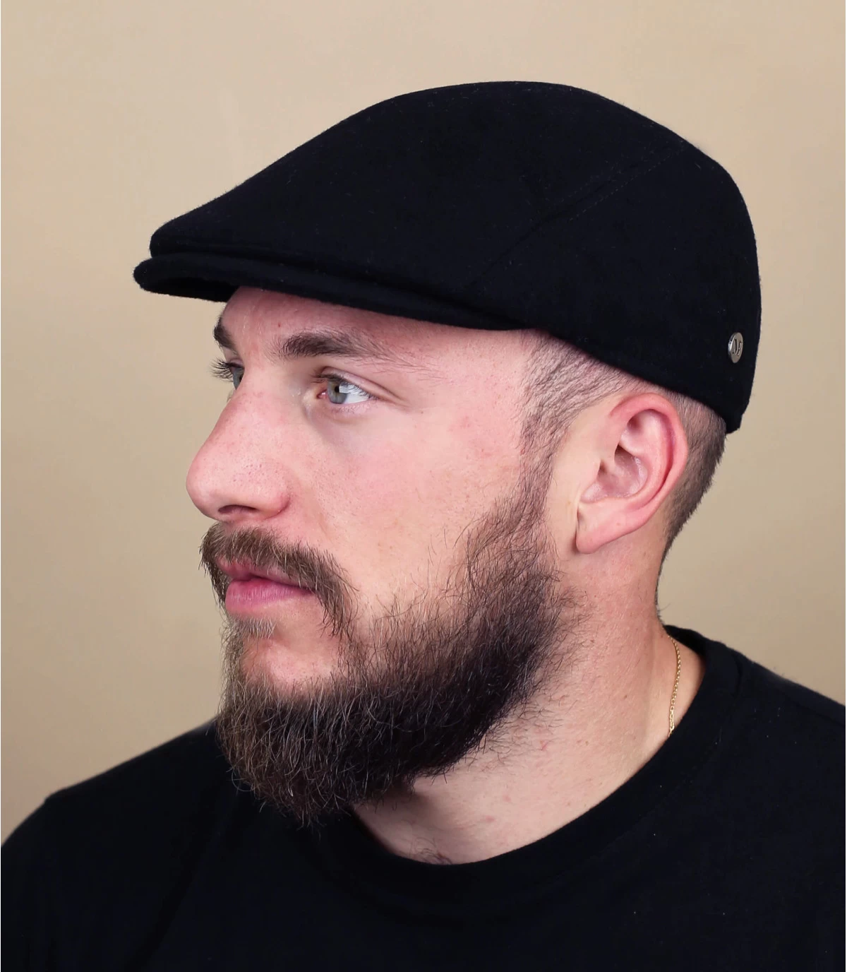 Tragen Sie diese stillvolle Flatcap im englischen Design in diesem Winter. Diese schwarze Schiebermütze wurde in Italien aus qualitativ hochwertiger Wolle hergestellt. Sie trägt eine Metallniete mit einem M an der Seite, um die Marke zu symbolisieren.