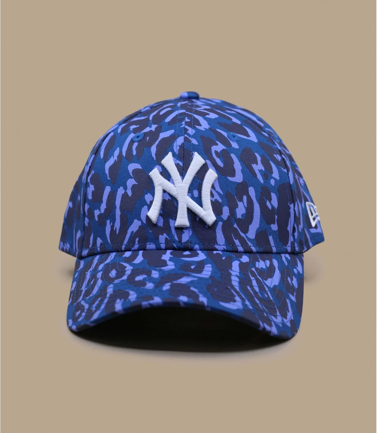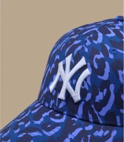 Du wirst auf deinem Weg alle Blicke auf dich ziehen, wenn du die Initialen des Teams der New York Yankees auf einem trendigen blauen Camouflage-Muster trägst. Die Flagge der Marke New Era ist auf der linken Seite zu sehen.