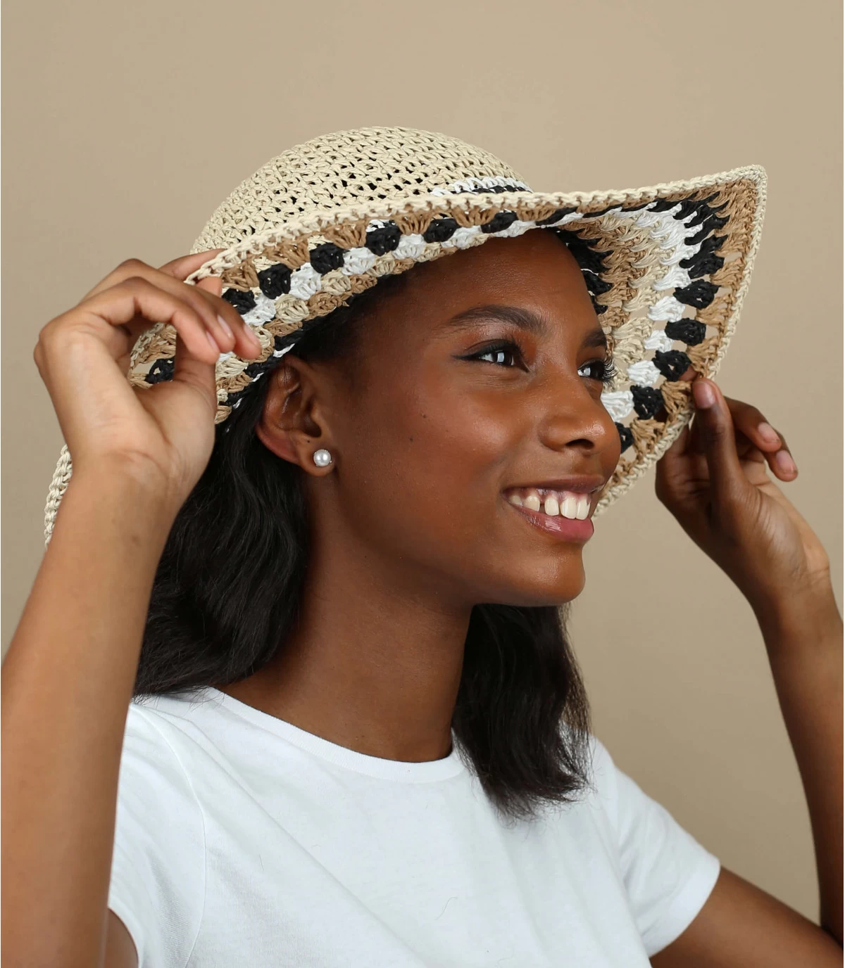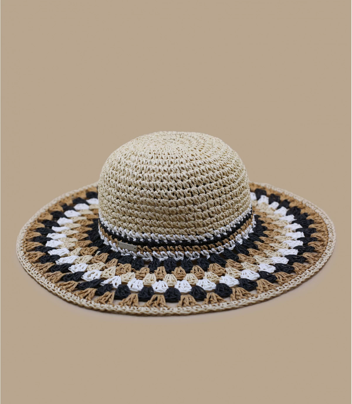 Entspannen Sie sich unbeschwert in der Sonne mit diesem eleganten Schlapphut aus Stroh. Sein weiches Geflecht ist atmungsaktiv und hat ein Zopfmuster in den Farben Braun, Weiß, Beige und Schwarz. Dieser Sommerhut ist das ideale Modell, um Sie bei langen Sonnenbädern zu schützen.