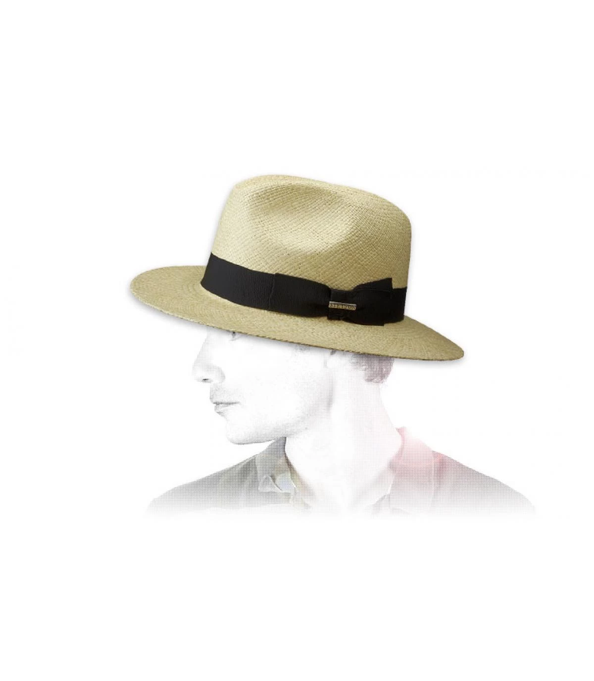 Die Marcellus Panama von Stetson ist ein Original Panama Strohhut, handgefertigt in Ecuador. Schwarzes gewebtes Hutband mit seitlichem Stetson Pin. Jeder Hut ist einzigartig. Geliefert in der speziellen Stetson Hutschachtel!