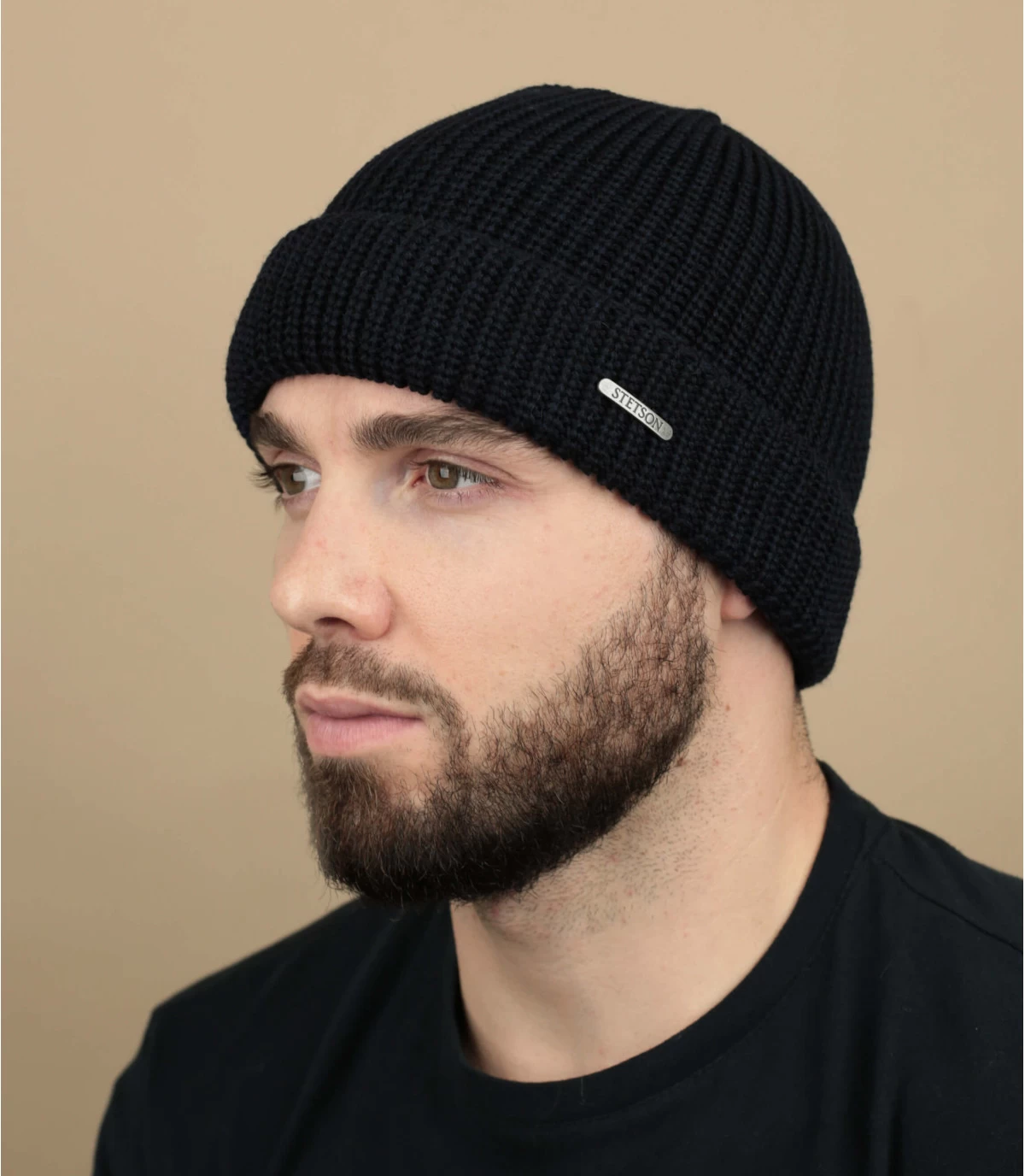 Marineblaue Stetson Mütze aus 100% Merinowolle.