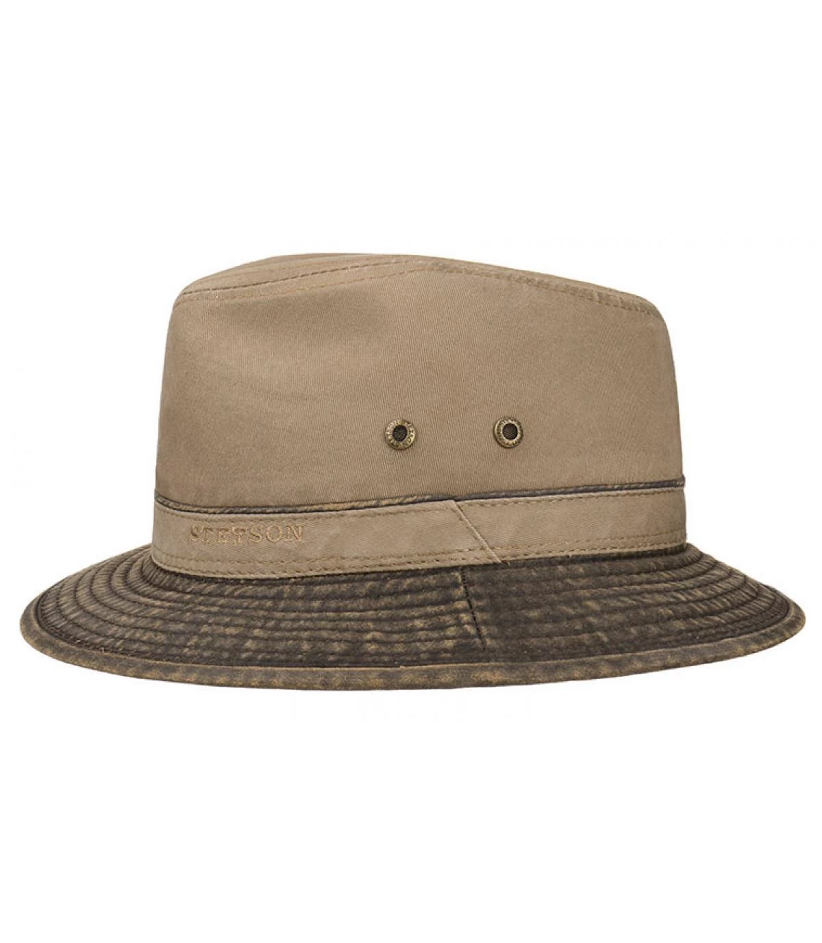 Schöner graufarbener Baumwollhut, leicht und angenehm zu tragen, seine Krempe ist farblich in einem dunkleren Grau gestaltet und bietet Ihnen ein UV Schutz von 40+: Dieser Outdoor Traveller Hut von Stetson ist immer eine sichere Wahl, gewohnte hochwertige Qualität und ausgesprochen angenehm zu tragen.