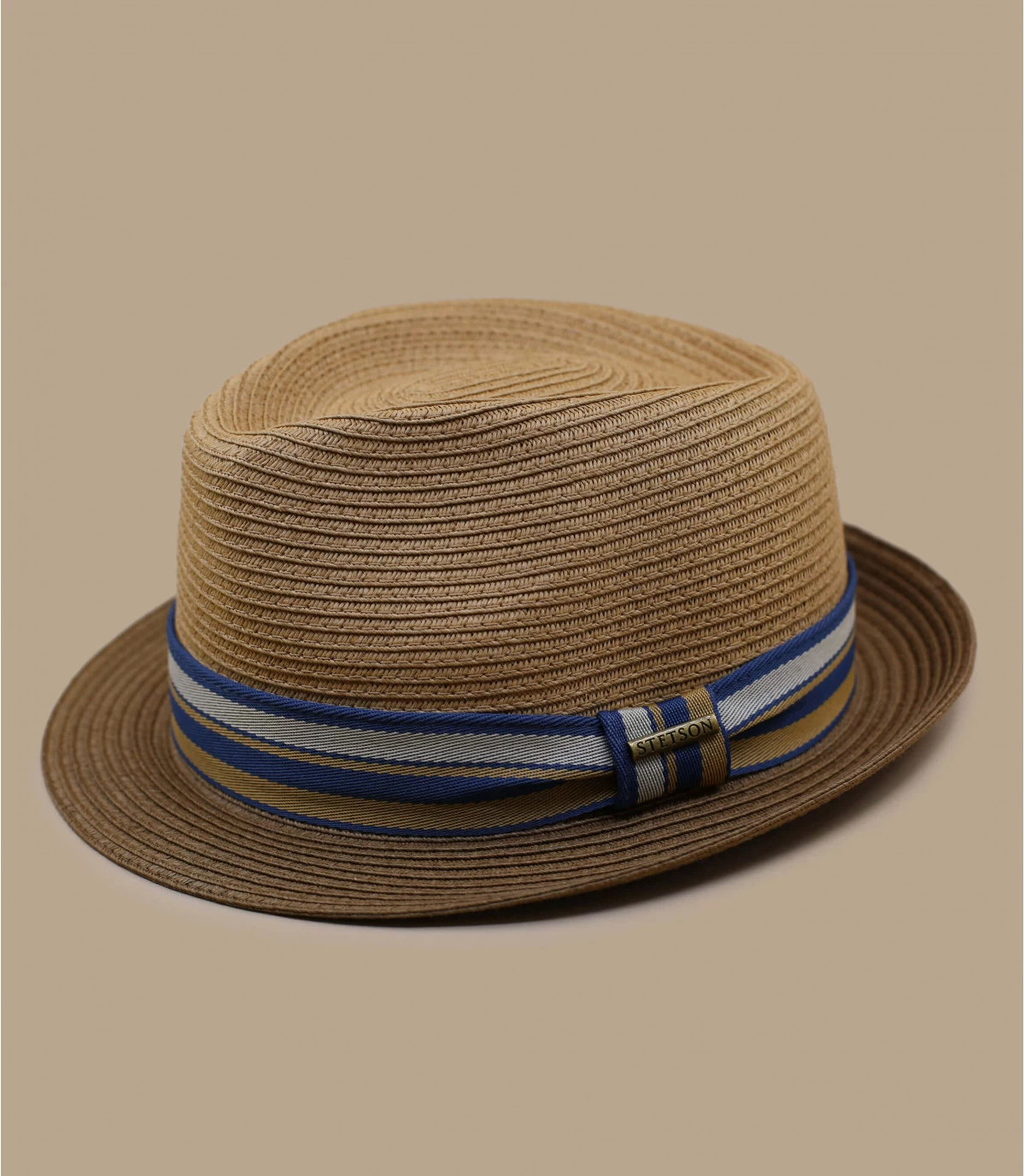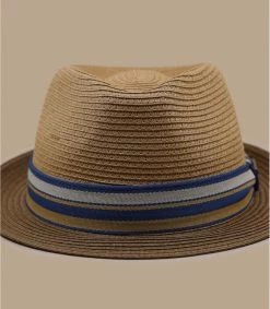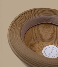 Der Trilby Hut kann zu jeder Gelegenheit getragen werden: zu einer Party, einer Veranstaltung oder zum Sonnenbaden. Dieses braune Modell ist aus Toyo gefertigt. Ein Schweißband schützt das Innere des Hutes vor Feuchtigkeit. Der Hut ist mit einem großen grauen Ripsband verziert, das die Marke zeigt.