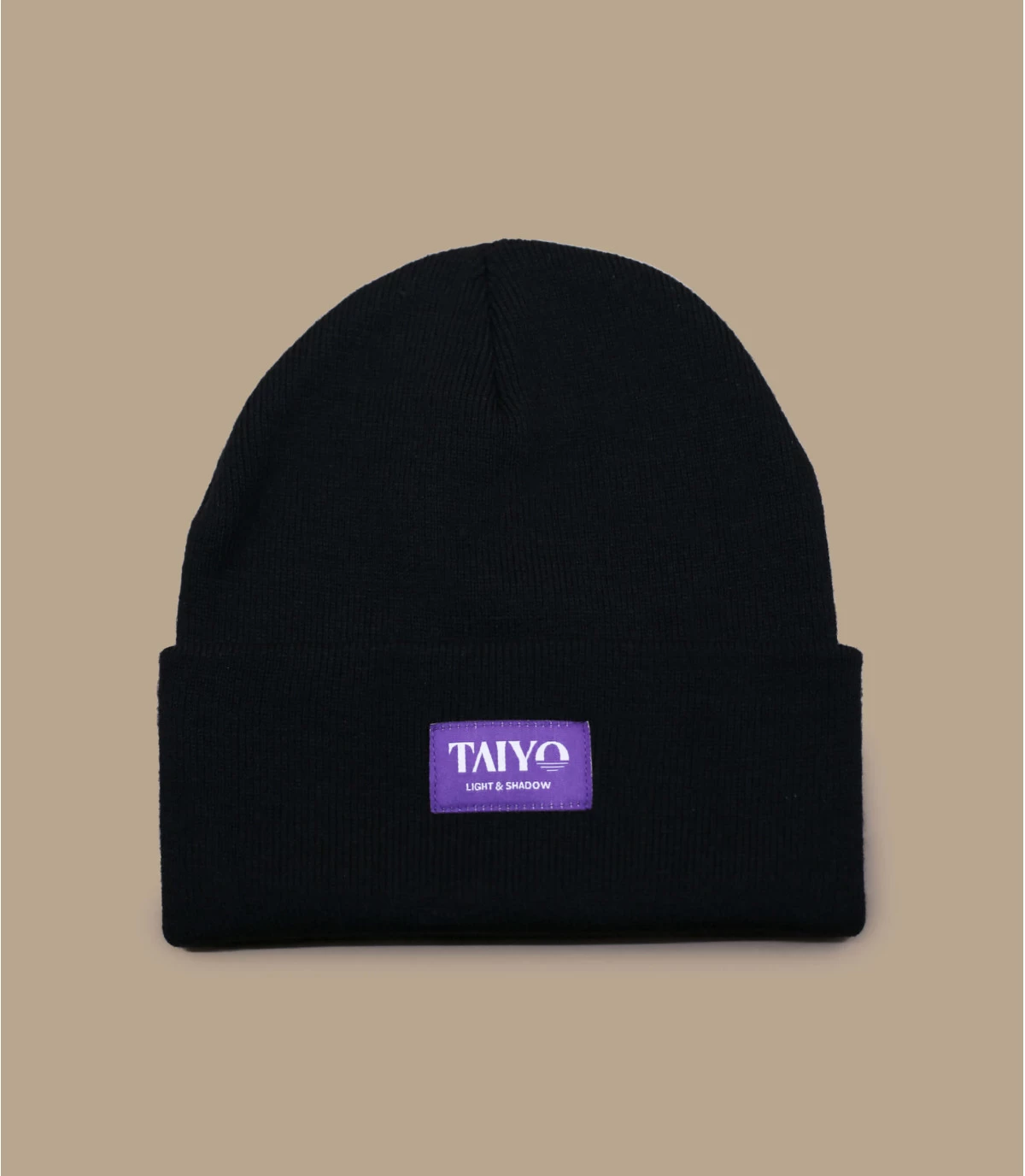 Diese schwarze Umschlagmütze mit einem violetten Taiyo-Patch sorgt für einen trendigen Streetwear-Look in der Übergangszeit und im Winter. Die Herstellung der Mütze ist umweltfreundlich und erfolgt aus recycelten Materialien.